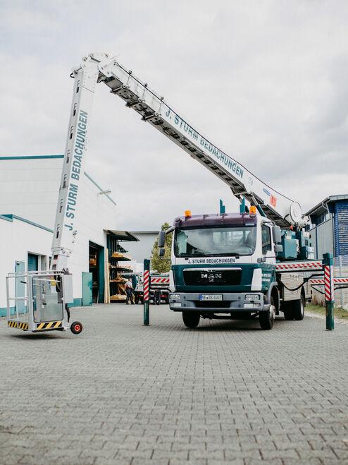 Größere Höhen und schwere Lasten sind für unseren eigenen Kran bei optimalem Stand kein Problem.